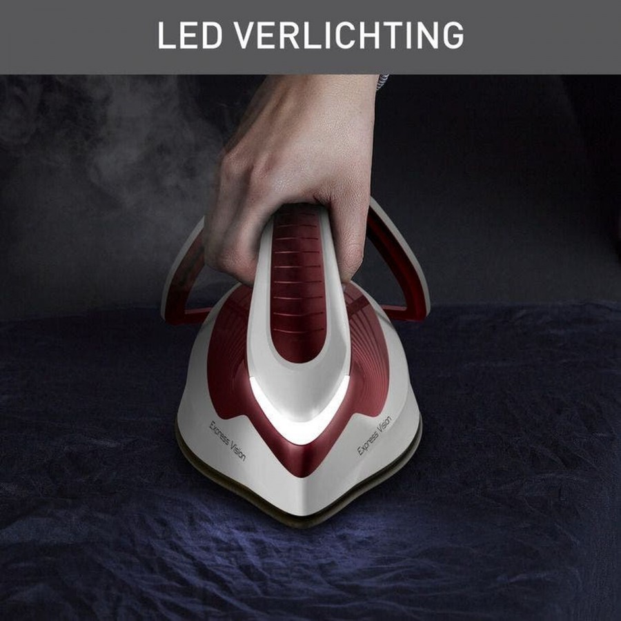 De Durilium AirGlide Autoclean zool van het Tefal SV8150E0 Express Vision strijkijzer voorkomt technisch gezien de ophoping van kalk en lijmresten, wat de glijeigenschappen en de stoomverdeling permanent optimaal houdt. Dit wordt perfect aangevuld door het Easy LED Vision-systeem dat de gehele zool verlicht, een gebruikersvoordeel dat zorgt voor perfect zicht op elke vouw en naad, waardoor u zekerder en preciezer kunt strijken, zelfs in een ruimte met minder licht, en fouten tot het verleden behoren.